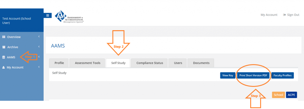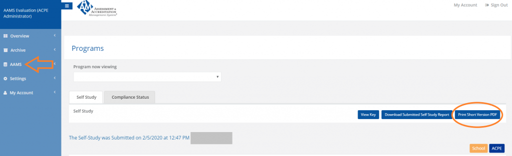 The latest feature added to AAMS is a short version PDF of the Self Study, which became available in February 2020. The Short Version PDF is offered to make the self-study process easier by providing a condensed document that can be used to review the narrative portions of the self-study.
