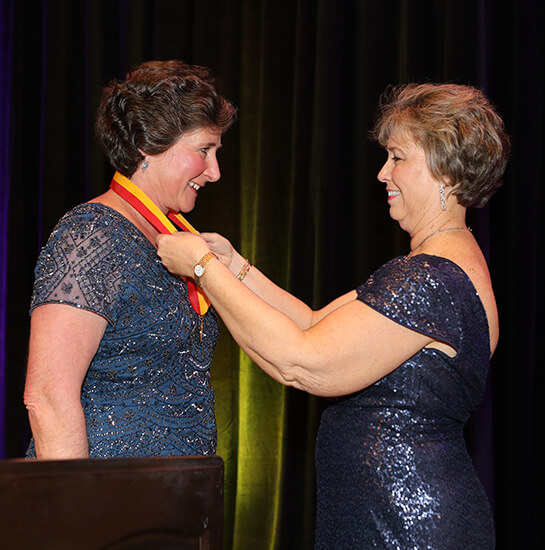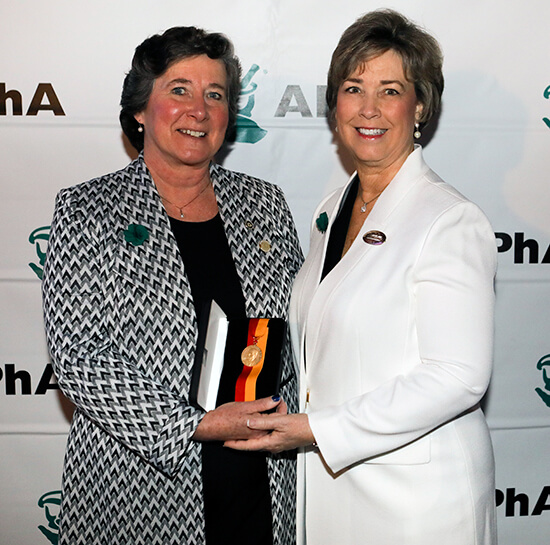 Lucinda Maine tells the story of her career as if it happened through a series of serendipitous accidents, unexpected opportunities and surprises of support. As she tells it, doors opened for her and she simply walked through them. Serving as AACP’s executive vice president and CEO for 20 years, Maine has been a visionary, strategic leader. She was awarded the Remington Honor Medal in 2019 (on its 100th anniversary), the highest honor in pharmacy, recognizing her nearly five decade-long commitment to her vision to elevate pharmacy education and provide better patient care.